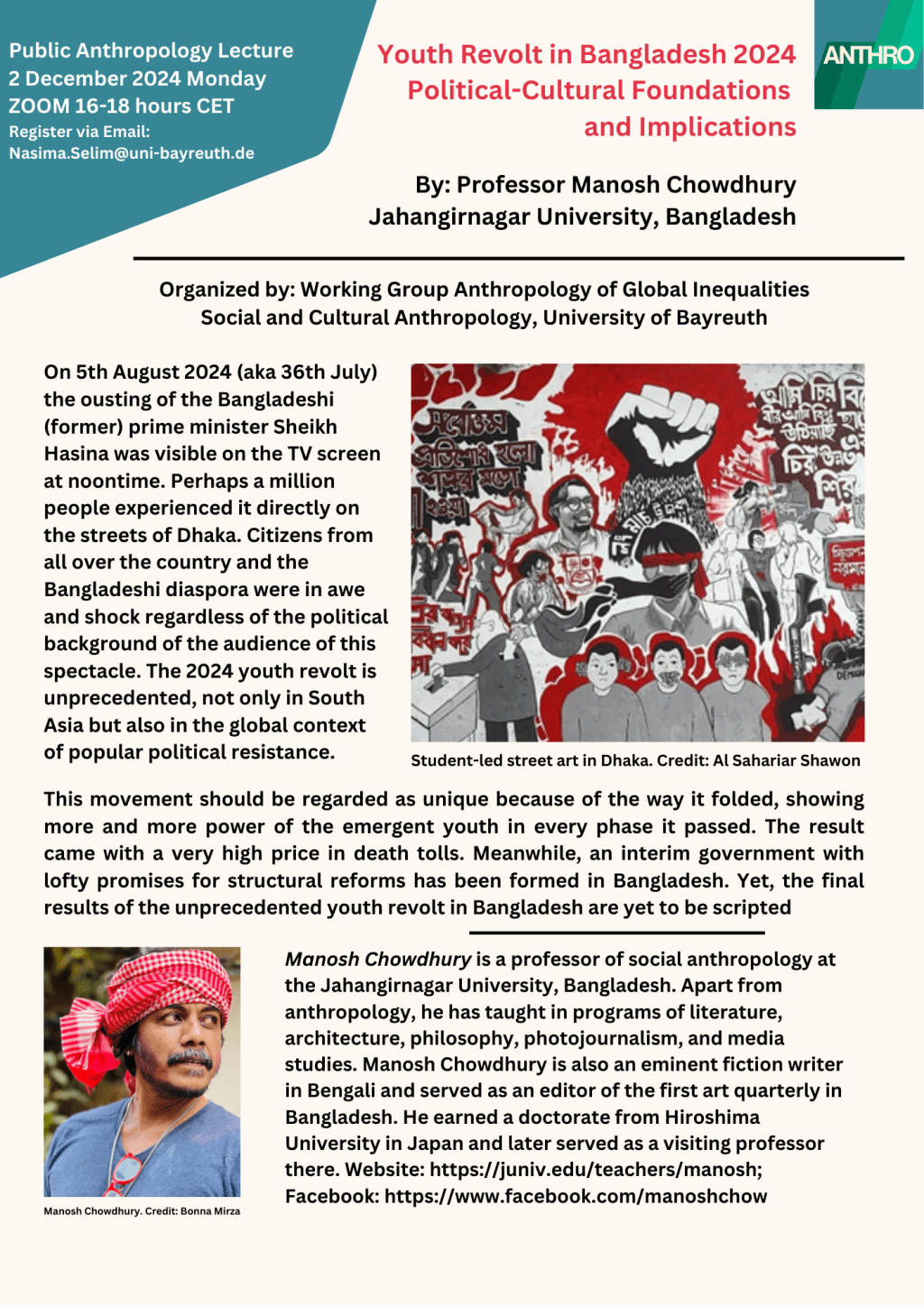 We cordially invite you to the online presentation of Prof. Manosh Chowdhury, titled “Youth Revolt in Bangladesh 2024: Political-Cultural Foundations and Implications” on 2 December 2024, 16-18 hours CET